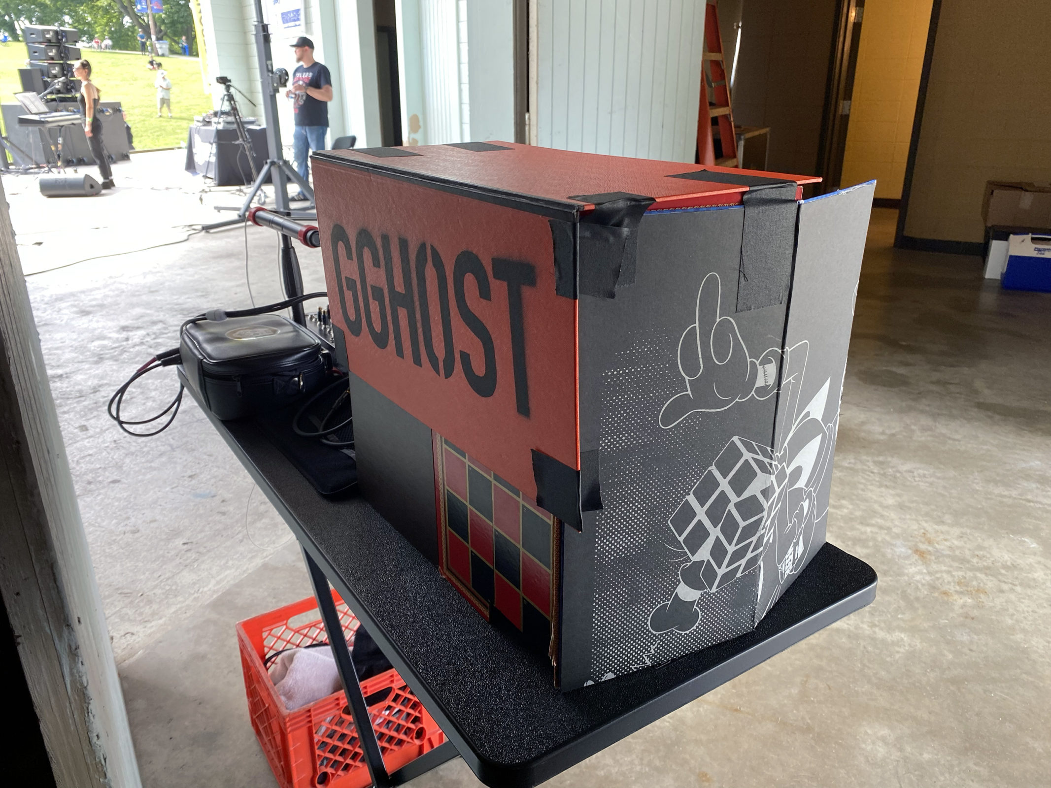 Have you ever tried to perform at a live gig, using midi-controllers or devices that have backlit pads or screens, only to find out the sun makes it so you can barely tell what’s going on? Me too. I learned the hard way, but luckily a quick teardown and setup in a more shaded area, I was able to get back up and running. But, it was a frustrating scenario and I like to prevent these types of issues happening. So when WMSE asked my noise-rap project, Guerrilla Ghost, to play their “Backyard BBQ” at Humboldt Park last year, I did some research and didn’t find much by the way of good solutions. I did find ONE reddit post where, in the comments, someone noted that folks at outdoor EDM festivals are known to use checker boards to shield their gear from the sun while they play. I searched again, prior to posting this, and didn’t find that original post that sent me down this path, but another one outlining the problem. I figured I’d share my approach in hopes that it might help others prepare for gigging outdoors with electronics.